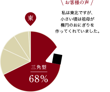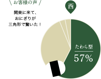 全国的に三角形のおにぎりが主流でしたが、西日本では俵型が人気でした。