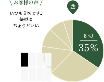 半切:28% 6切:10% 3切:14% 4切:8% 全型:5% その他:0%