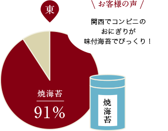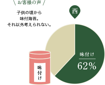 弊社のお客様でも味付海苔の購入は比較的関西のお客様が多く、関東より東側のお客様は焼海苔をご購入される方が多いです。