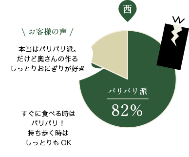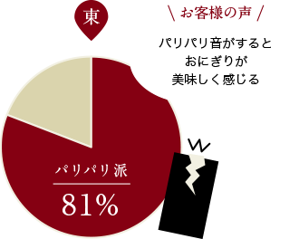 西日本が味付海苔派なのに対して、東日本は焼海苔派が多数。そしておにぎりに巻く海苔派パリパリ派が東西たがわず人気でした。