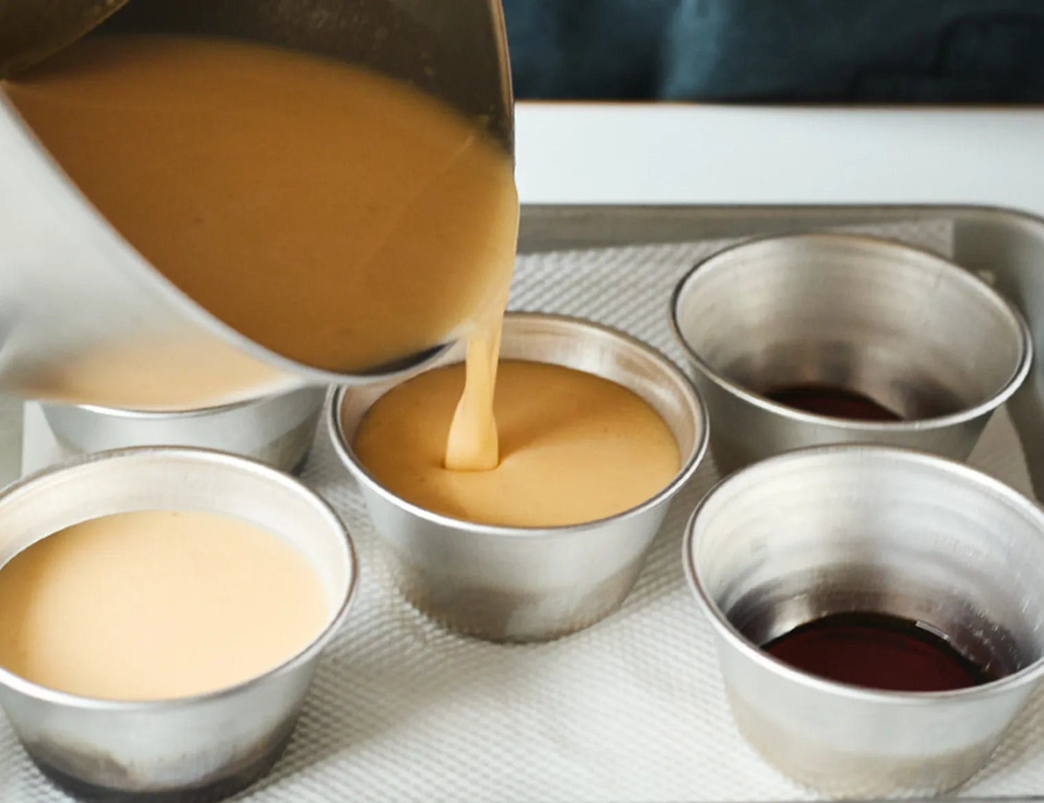 ④カラメルソースの型に流し入れる。