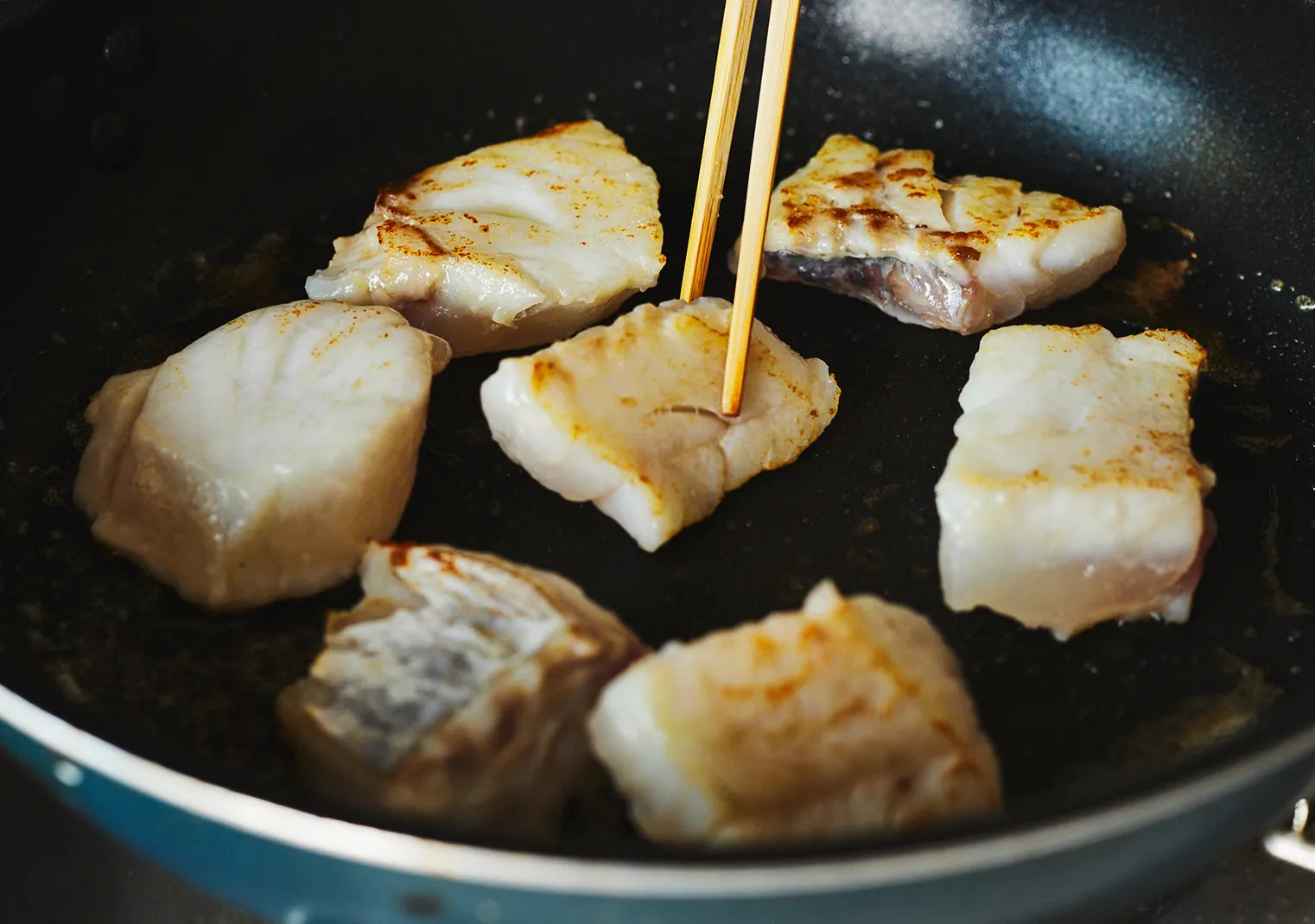 ③フライパンにバター10g (分量外) を入れ火にかけ①の鱈を焼く。表面に焼き色をつける(中まで火がとおってなくてOK)。バットに鱈を移し、ふき味噌とさっと和える。