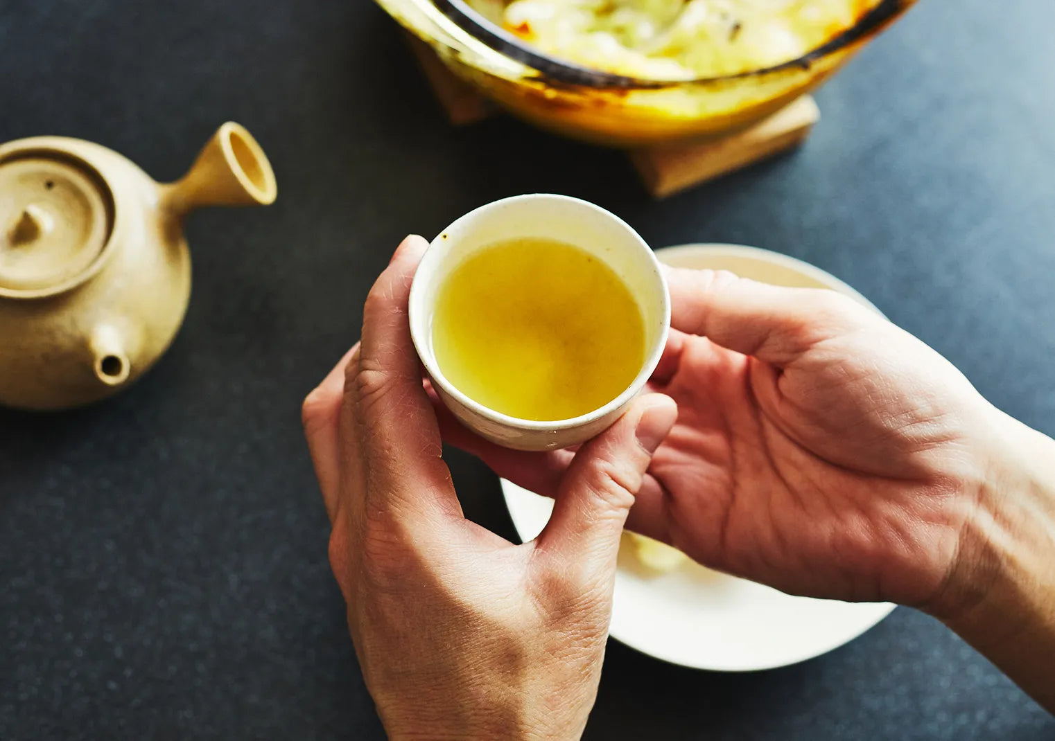 夏井 グラタンは味がしっかりしていますよね。だからこそ、玉露の深みがとてもいい“お口直し”になると感じました。グラタンを食べたあとに玉露を飲むと、その深い旨味がより美味しく感じられる。相乗効果がある組み合わせだと思います。