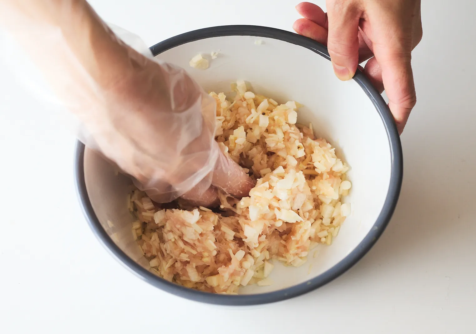 夏井 えのきはできるだけ細かく刻むことと、山芋も粗めのみじん切りにすること。食感を残しつつ、包みやすくするためです。キャベツを使っていないので、通常の餃子のように水分を絞る手間がなく、意外と手早くつくれます。