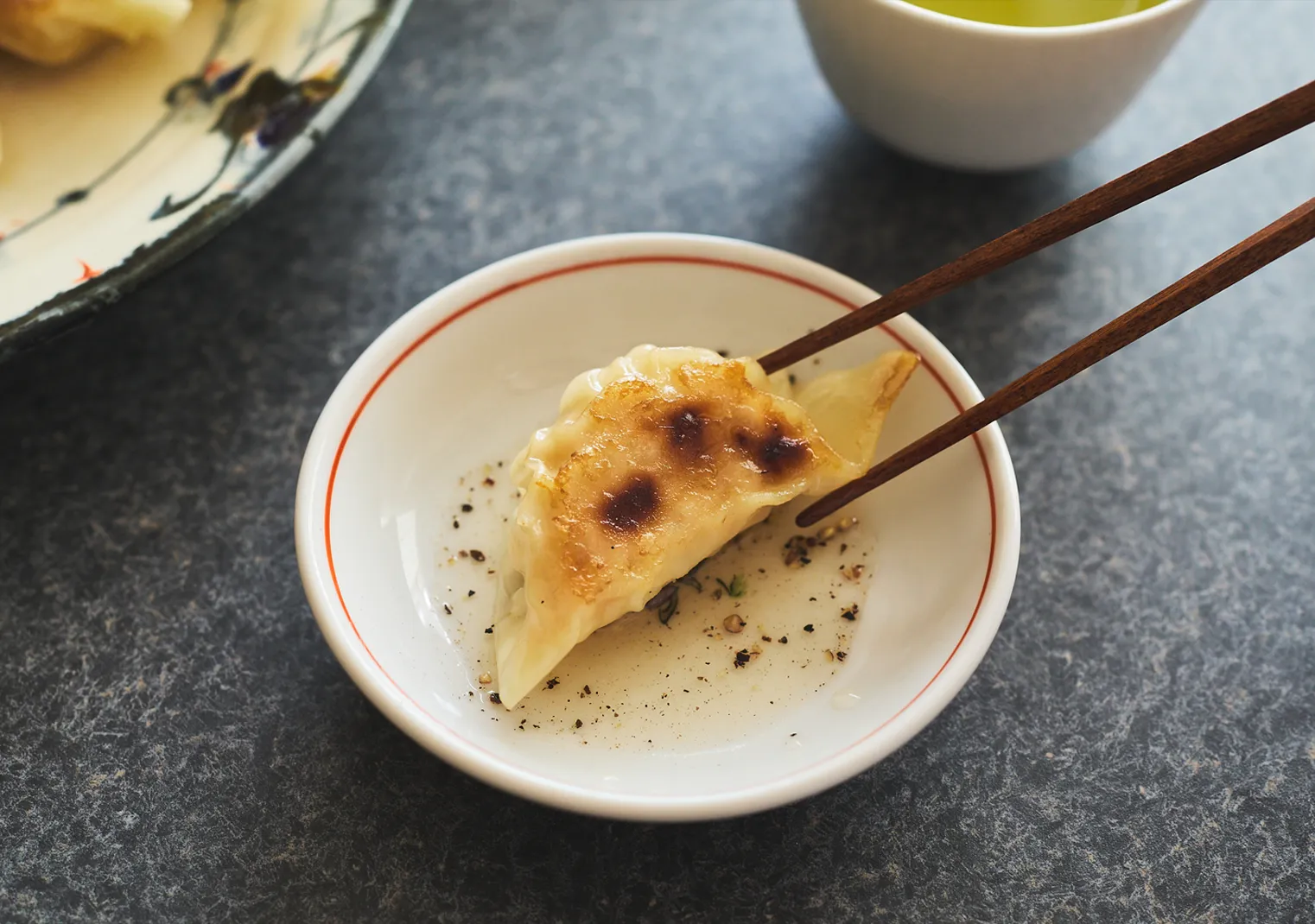 〆は、お茶で。 issue 16 鶏むね肉とえのきの味噌餃子 × 福岡「やめ」