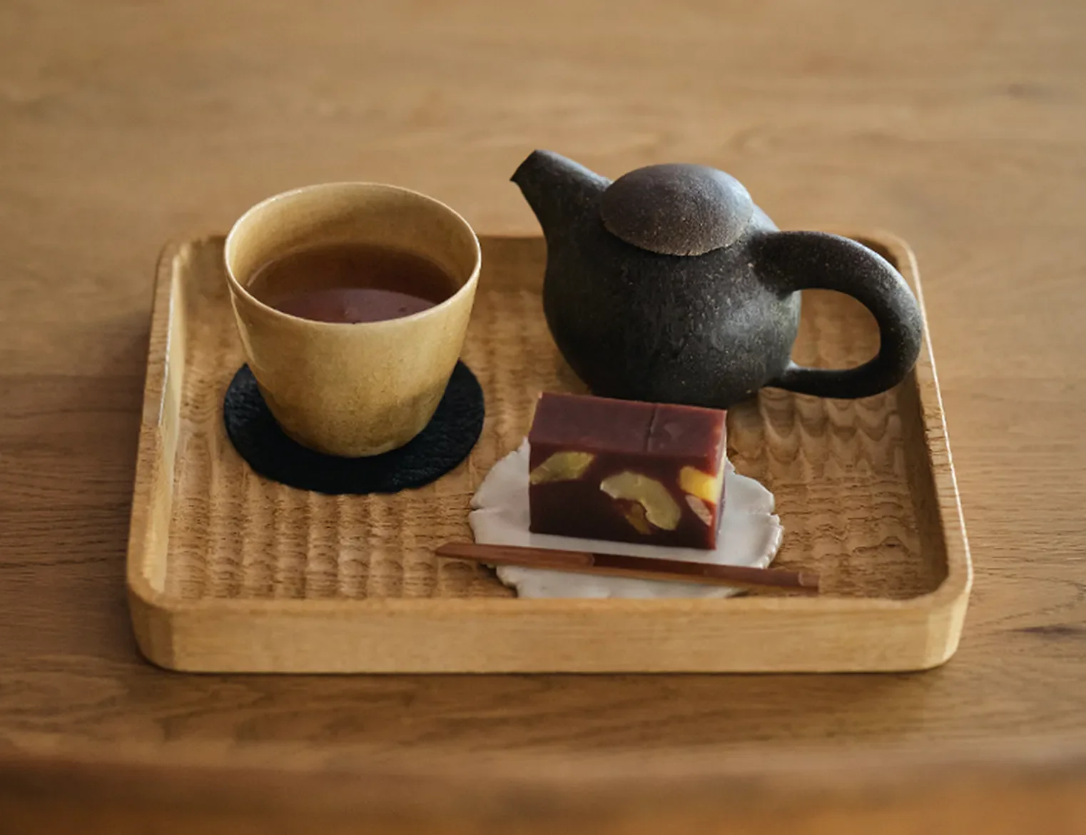 本日のおやつタイムは、頂きものの栗蒸し羊羹に合わせてほうじ茶をセレクトしてくれた渡辺さん。