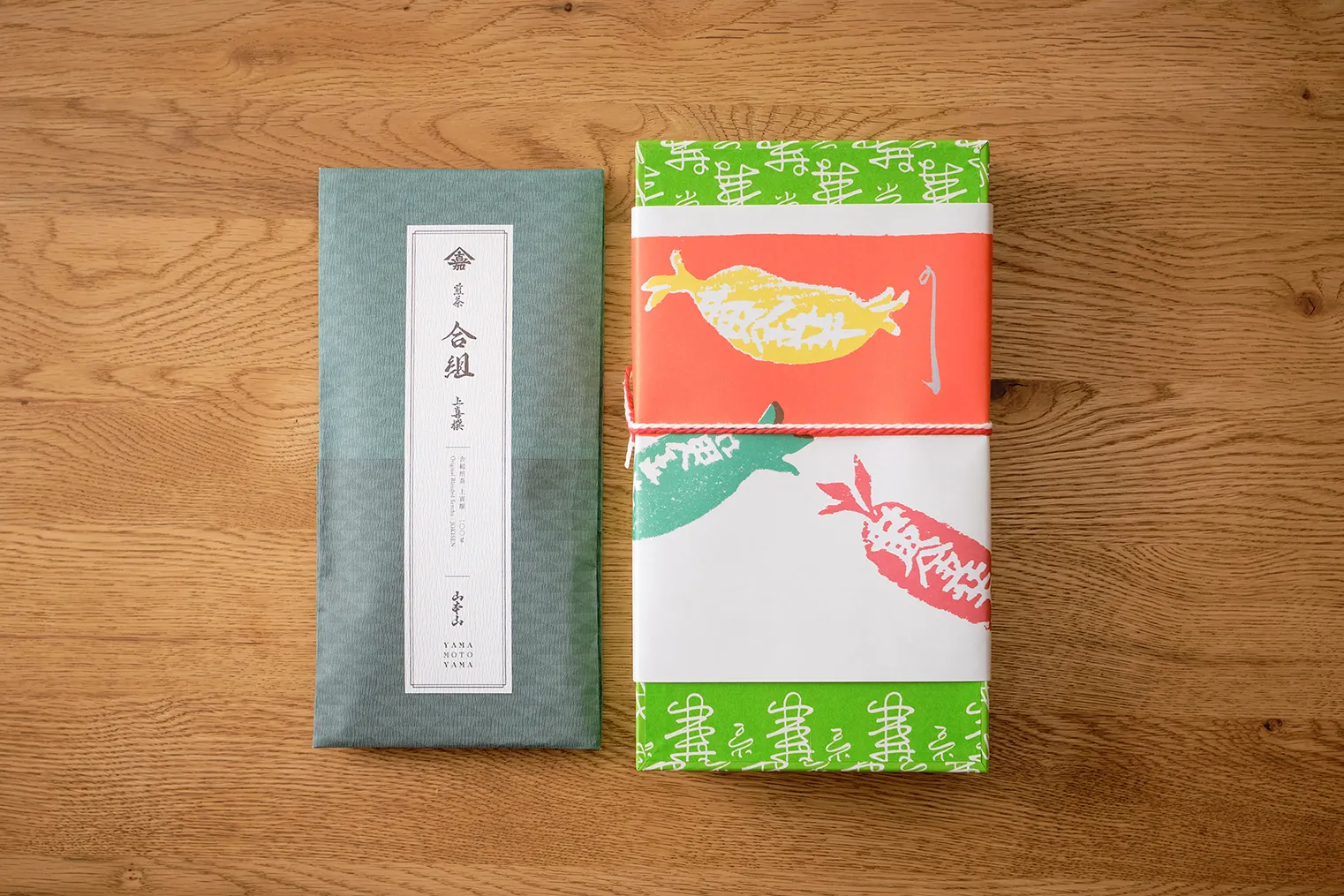 今回贈り物に選んだお茶は…「山本山合組上喜撰」程よい渋みと香りが楽しめる煎茶。すっきりとした味わいの中にも、渋みを感じる味わい深い煎茶です。和紙の包み袋での包装なので、プチギフト、手土産、お返しなどにもおすすめです。