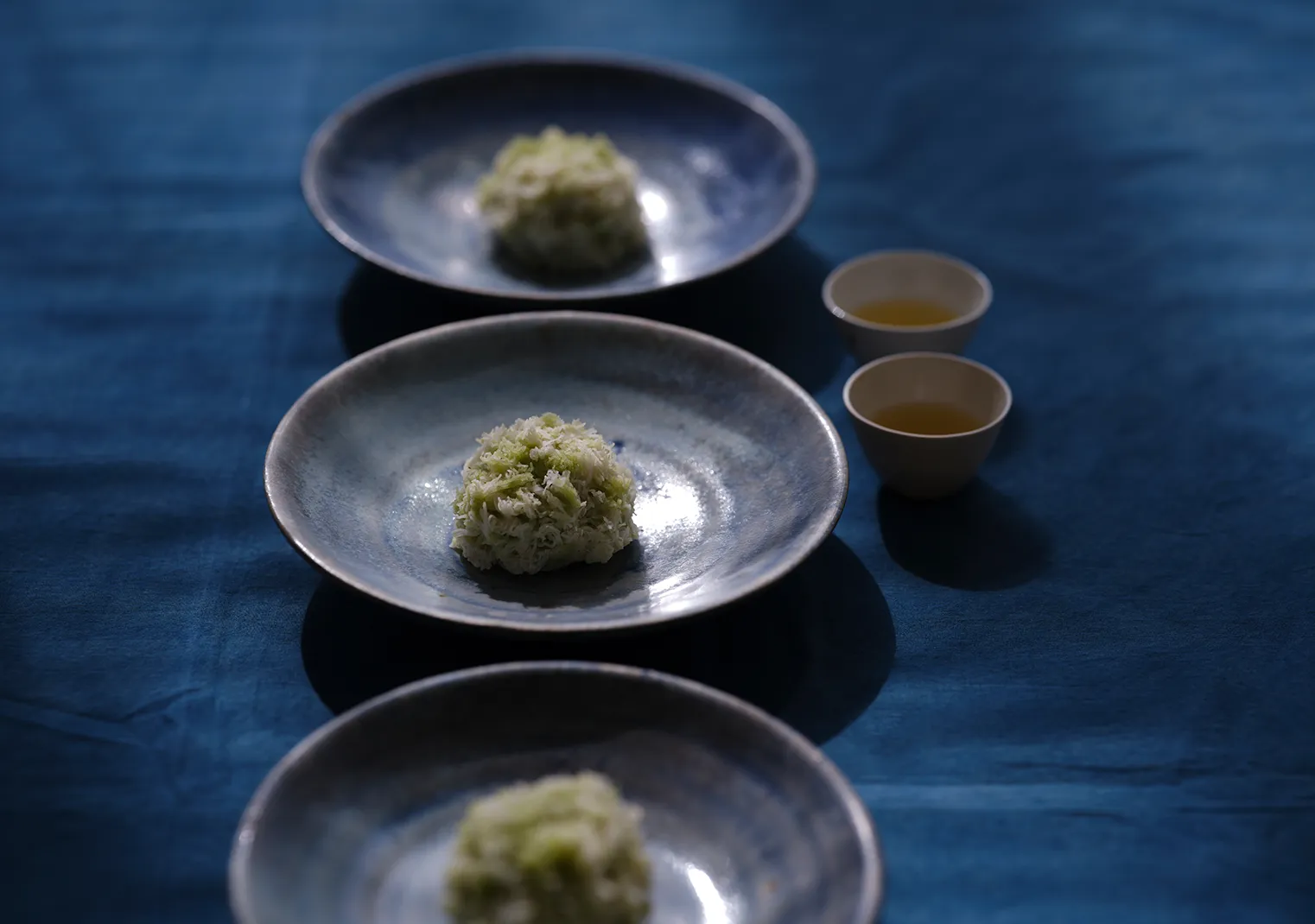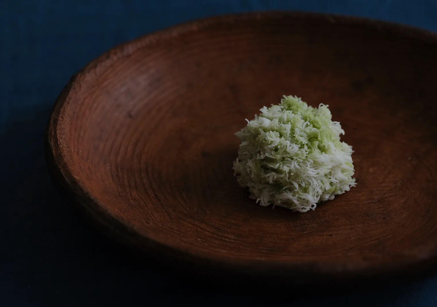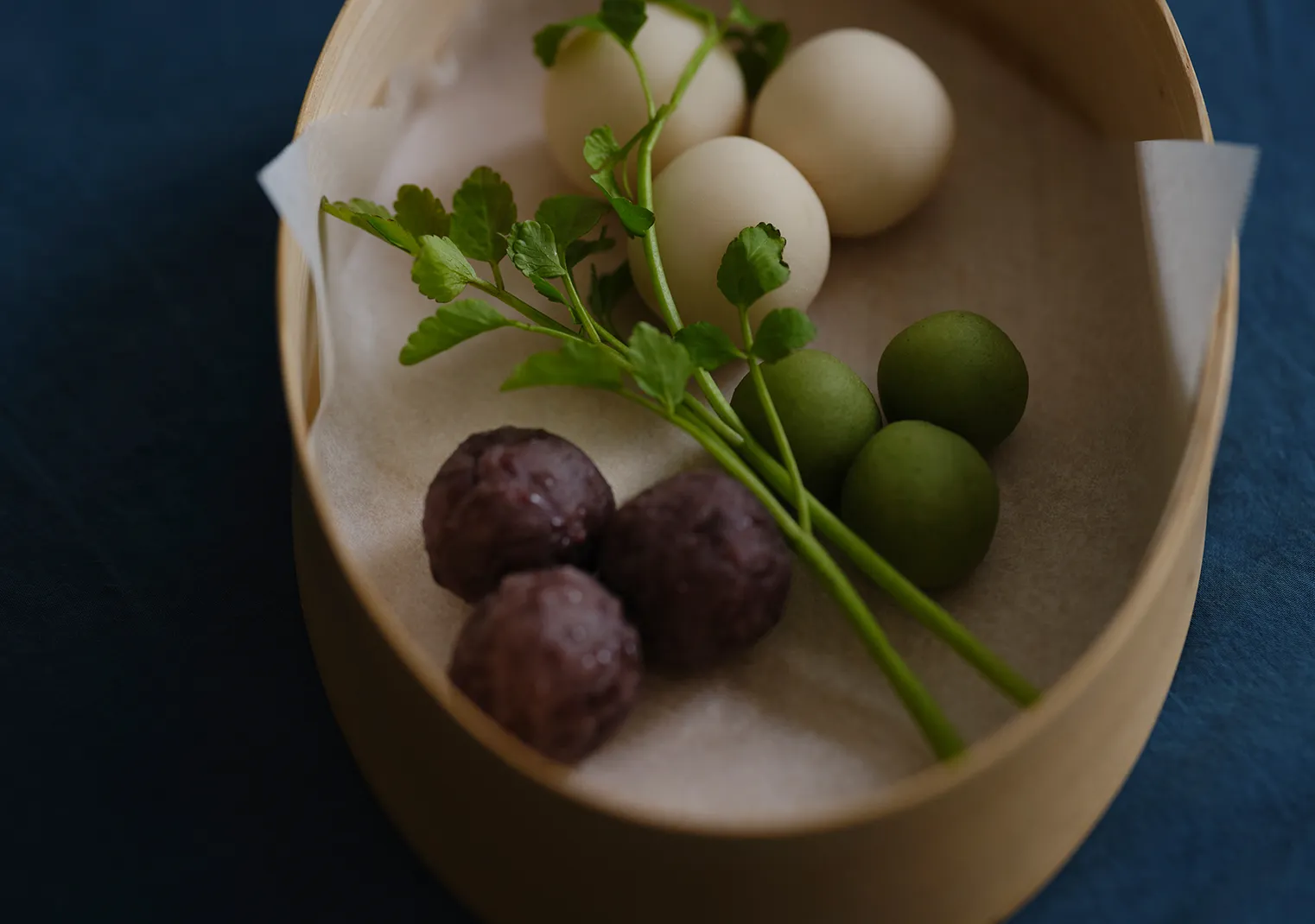 「空気を召し上がっていただきたい」と、丁寧に裏ごしした後にそぼろ状に仕立てた餡の、なんと口溶けの軽やかなことでしょう。表面を覆うエアリーな芹餡から確かな芹の風味が香り、こし餡に忍ばせた山芋のねっとりとした食感とのコントラスで、口の中で爽やかな苦味が膨らみます。