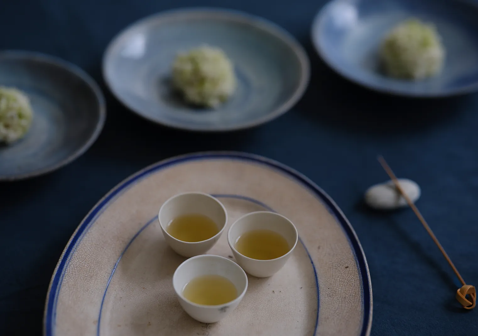 今回の茶会では、しとしとと降り注ぐ春雨と芽吹き始めた新緑をイメージした茶菓と共に、蓋碗で淹れる玉露をご提案します。
